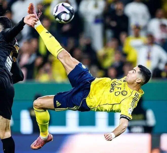 拿这次来说,梅罗又在同一天吸睛了。利雅得胜利4:1大胜赛哈特海湾,比赛本身没什么可说的,而可说的是C罗的倒钩。很难想象,一个40岁的球员还有这样的身体柔韧性和应变能力。前几天,麦克托米奈的倒钩刚被认定为史上脚尖最高的倒钩,而C罗的这个倒钩,虽然高度上略逊一筹,但考虑到他的年龄,这也算是一个硬气的回应了。